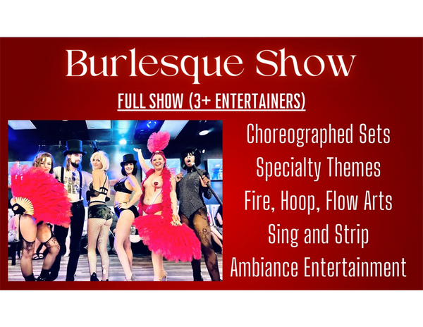 Hire our Burlesque Entertainers for your next event! Themes and costumes can always be customized. We offer a variety of props to add even more razzle-dazzle to any performance! Upcoming office party, birthday party, or bachelor/bachelorette party?